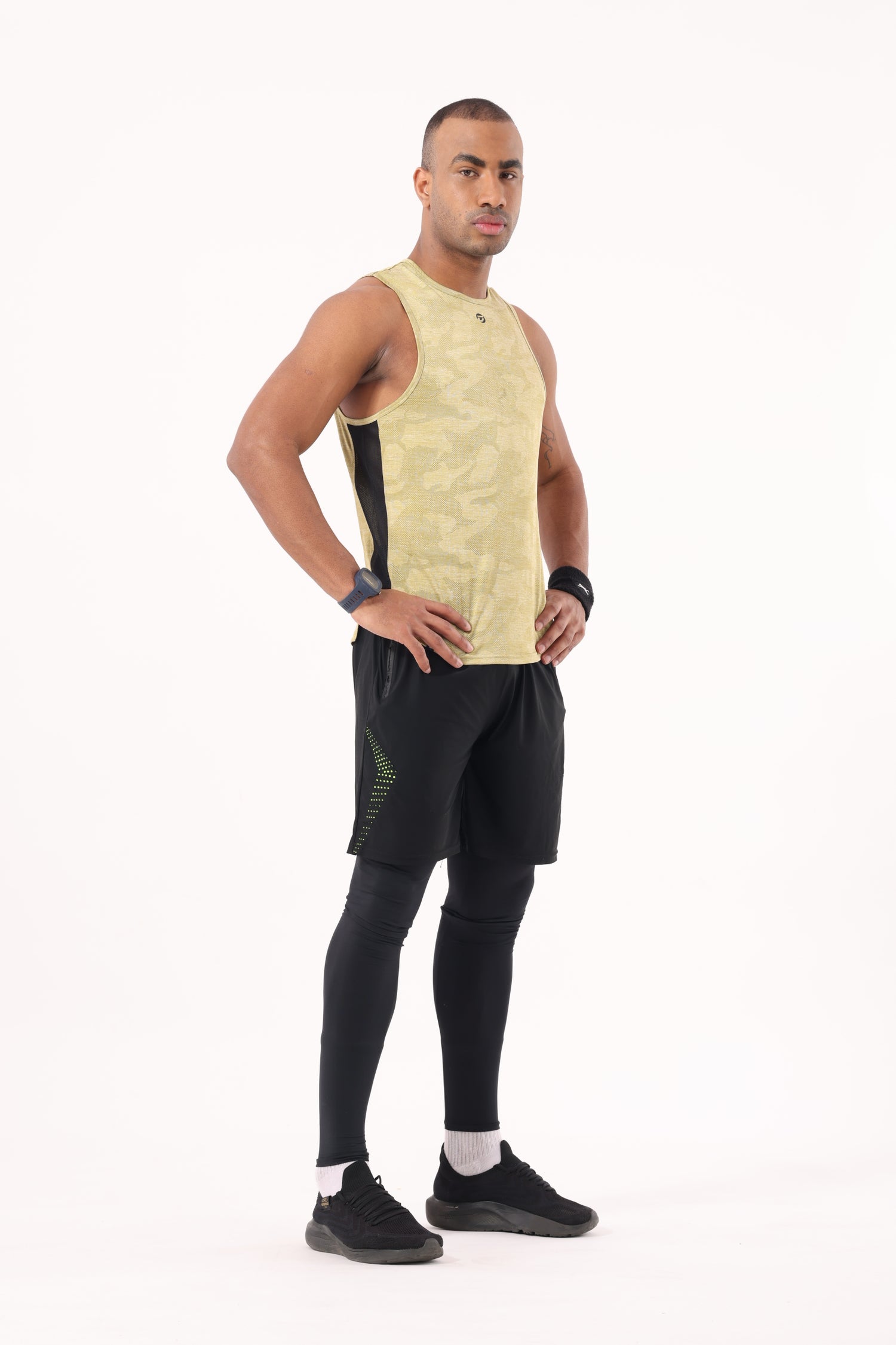 Drizone Self Jacquard Panel Tank Top – Sleeveless Performance Wear - Yellow
